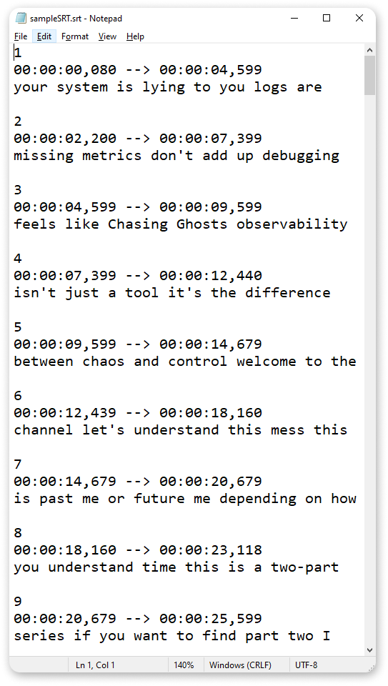 Each subtitle in an SRT file uses a simple, standardized structure: